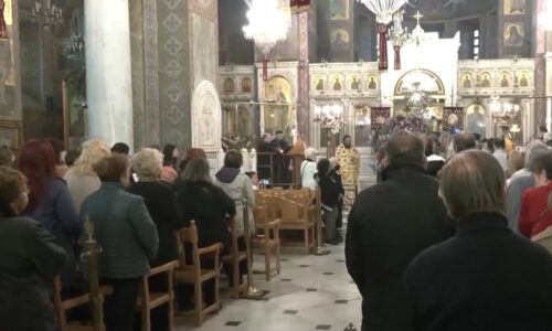 Οι πιστοί έχουν συρρεύσει εντός της εκκλησίας στον Άγιο Κωνσταντίνο Ομόνοιας προκειμένου...