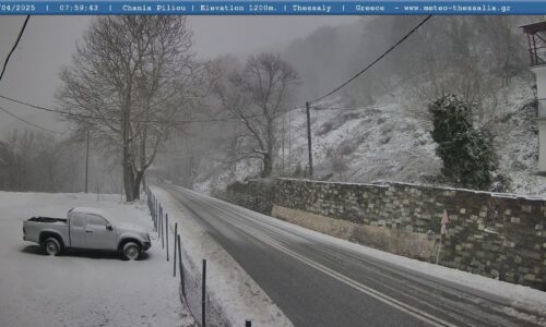 Χιονίζει από τα ξημερώματα της Δευτέρα στα Χάνια Πηλίου όπου...