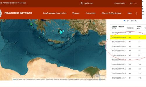 Πέντε νέες σεισμικές δονήσεις με ισχύ άνω των 4 βαθμών...