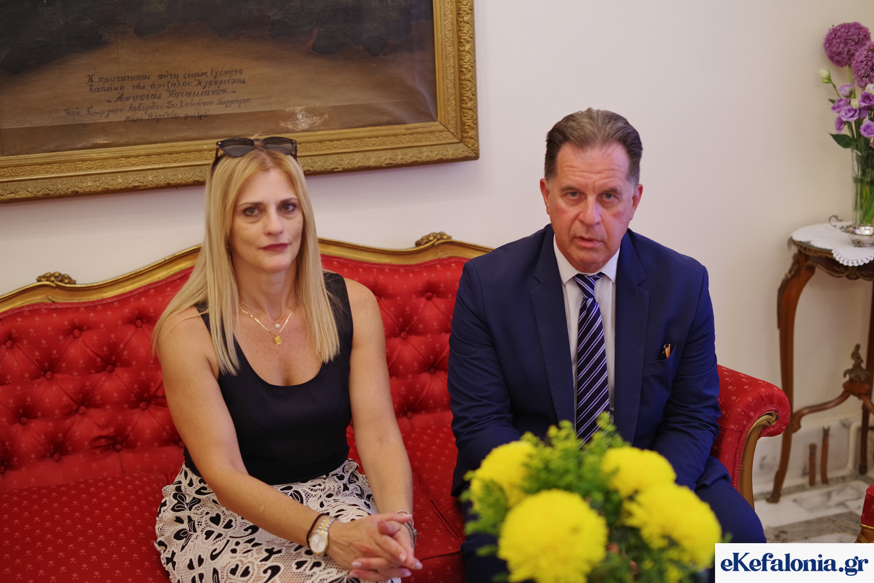 Ο Δήμαρχος Αργοστολίου Θεόφιλος Μιχαλάτος, μαζί με τον Βουλευτή Κεφαλονιάς Παναγή Καππάτο, πρόσφεραν δώρα και φωτογραφήθηκαν με τον Γενικό Γραμματέα του Υπουργείου Παιδείας, που βρέθηκε στο νησί τόσο για τον εορτασμό, όσο και για να επιβλέψει την ανακατασκευή πολλών σχολικών κτιρίων μέσα από το πρόγραμμα «Μαριέττα Γιαννάκου».