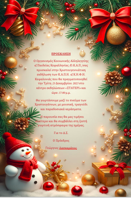 Χριστουγεννιάτικη εκδήλωση από τον ΟΚΑΠ Κεφαλληνίας στις 23 Δεκεμβρίου