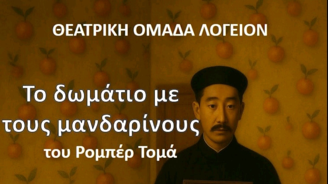 Η Θεατρική Ομάδα ΛΟΓΕΙΟΝ θα μας παρουσιάσει την θεατρική παράσταση «Το δωμάτιο με τους μανδαρίνους» του Ρομπέρ Τομά την Παρασκευή 9/05, το Σάββατο 10/05 και την Κυριακή 11/05 στο Πολύκεντρο Διβαράτων «Θέμος Ποταμιάνος» στις 21.00.