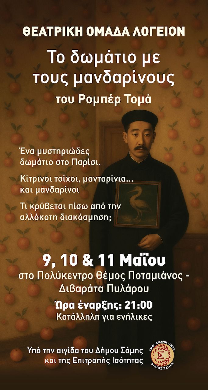 Δήμος Σάμης: Θεατρική Παράσταση “Το δωμάτιο με τους μανδαρίνους”