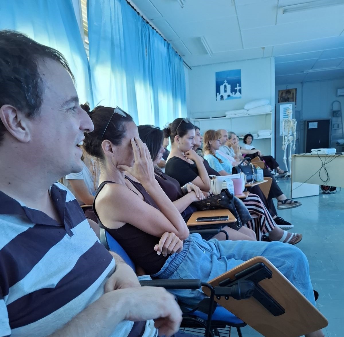 Το πρώτο σεμινάριο πραγματοποιήθηκε στον χώρο του φυσικοθεραπευτηρίου του κ. Γεώργιου Γεωργάτου, ο οποίος υποδέχθηκε θερμά την ομάδα του ΚΔΗΦ. Κατά την επίσκεψη, έγινε αναλυτική παρουσίαση θεμάτων που σχετίζονται με τις μυοσκελετικές παθήσεις και την πρόληψη τραυματισμών που συνδέονται με την κακή στάση σώματος. Επιπλέον, ο κ. Γεωργάτος προσέφερε γενναιόδωρα στο Κέντρο μια ειδική ζώνη μετακίνησης ΑμεΑ, προσφέροντας ουσιαστική βοήθεια στην καθημερινή εξυπηρέτηση των ωφελούμενων.