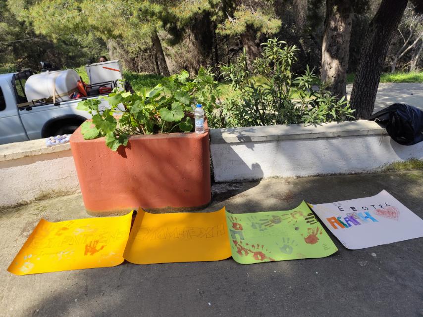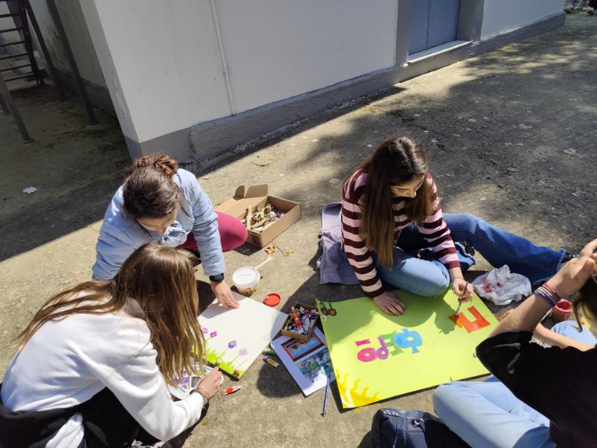 Καλλιτεχνική δημιουργία, καθώς οι μαθητές κατασκεύασαν αφίσες με θέμα τον εθελοντισμό και δημιούργησαν έργα χρησιμοποιώντας υλικά που συνέλεξαν από τη φύση.