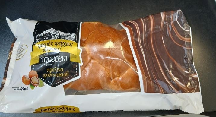 Πρόκειται για το προϊόν «Τσουρέκι με γέμιση πραλίνα φουντουκιού – Μικρές φάρμες του βουνού» με ημερομηνία ανάλωσης κατά προτίμηση πριν από τις 21/05/25 και αριθμό παρτίδας Lot 066A1, συσκευασίας καθαρού βάρους 480g, το οποίο παράγεται και συσκευάζεται στην Ελλάδα για λογαριασμό της ΜΑΡΚΕΤ ΙΝ.