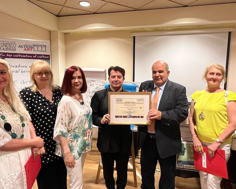 Xαιρετισμό και προλογική παρουσίαση στην έναρξη της εκδήλωσης απηύθυνε ο πρόεδρος της Ευρωπαϊκής και Βορειοαμερικανικής Ομοσπονδίας ομίλων και συλλόγων για την UNESCO, κος Ιωάννης Μαρωνίτης, ο οποίος στη λήξη του masterclass βράβευσε τον διακεκριμένο δημιουργό για την προσφορά του στο πολιτιστικό γίγνεσθαι και την συνεργασία του στην εκπαιδευτική εκδήλωση, που διοργανώθηκε στα πλαίσια του διεθνούς forum Money Show 2025.