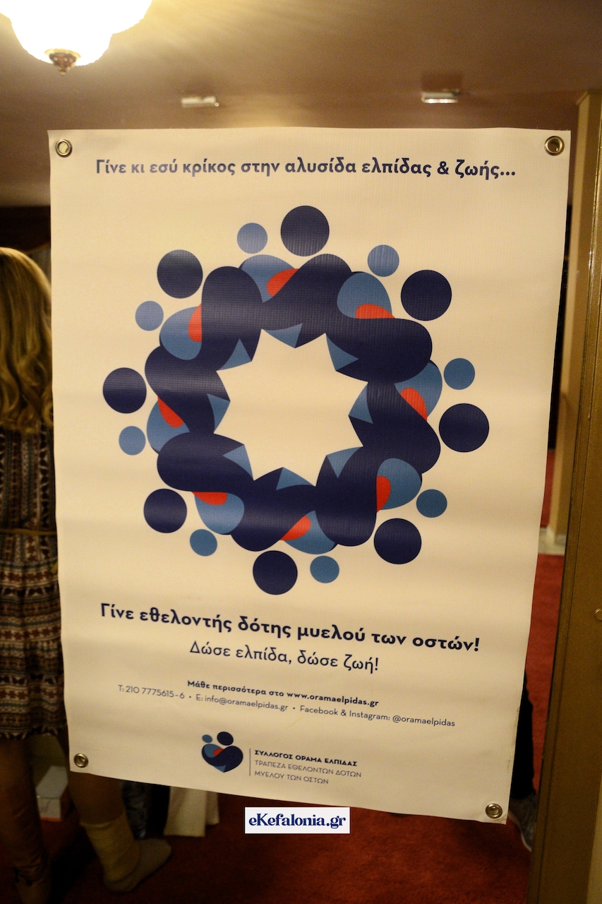 Παράλληλα, στο φουαγιέ του θεάτρου, εκπρόσωποι του Συλλόγου «Όραμα Ελπίδας» ενημέρωναν τους παρευρισκόμενους για τη διαδικασία εγγραφής δοτών μυελού των οστών, ενώ όσοι το επιθυμούσαν είχαν τη δυνατότητα να δώσουν δείγμα για την ένταξή τους στο μητρώο εθελοντών δοτών.