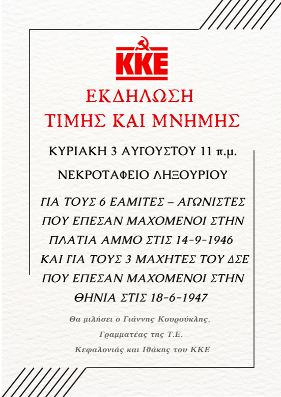 Εκδήλωση τιμής για τους 6 ΕΑΜίτες -Αγωνιστές στο Ληξούρι