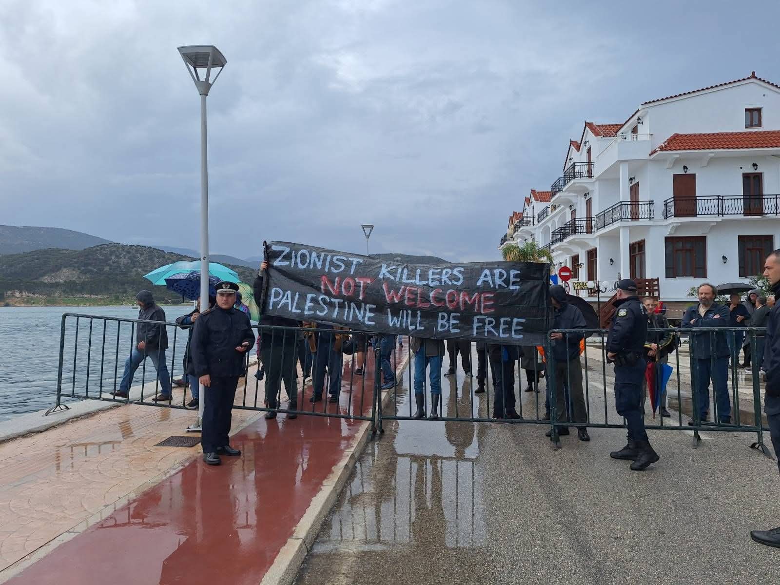 Στην απόπειρα μας να μπλοκάρουμε την επίσκεψη σιωνιστών γενοκτόνων στο νησί μας, δεκάδες αγωνιστές ανταποκρίθηκαν στο κάλεσμα της πρωτοβουλίας για να αντισταθούν στους γενοκτόνους και τους υποστηρικτές τους και μετά από προσπάθειες να σπάσουμε το μπλόκο, υπήρξαν συμπλοκές σώμα με σώμα και δυνάμεις καταστολής επιτέθηκαν βίαια στους συγκεντρωμένους και προχώρησαν μάλιστα σε προσαγωγή συντρόφου μας, του οποίου απαιτήσαμε και πετύχαμε την απελευθέρωση του.