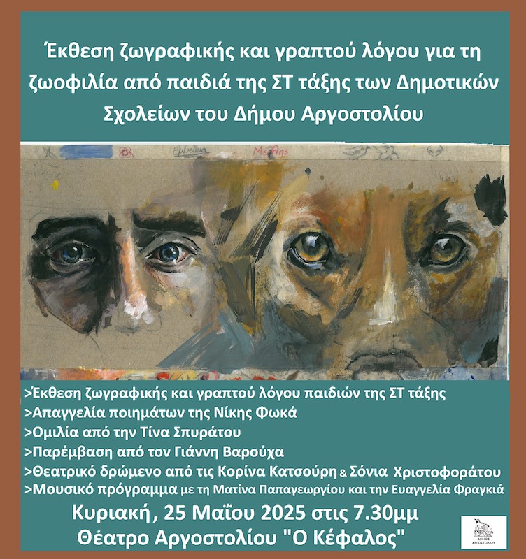 Σε συνέχεια της προκήρυξης μαθητικής δράσης από τον Δήμο Αργοστολίου, στα πλαίσια της παγκόσμιας ημέρας αδέσποτων ζώων, έχουμε την τιμή και τη χαρά να μοιραστούμε μαζί σας τη διοργάνωση μιας ανοικτής εκδήλωσης ενημέρωσης, ευαισθητοποίησης και έμπρακτης αλληλεγγύης στο Δημοτικό Θέατρο Αργοστολίου «Ο Κέφαλος».