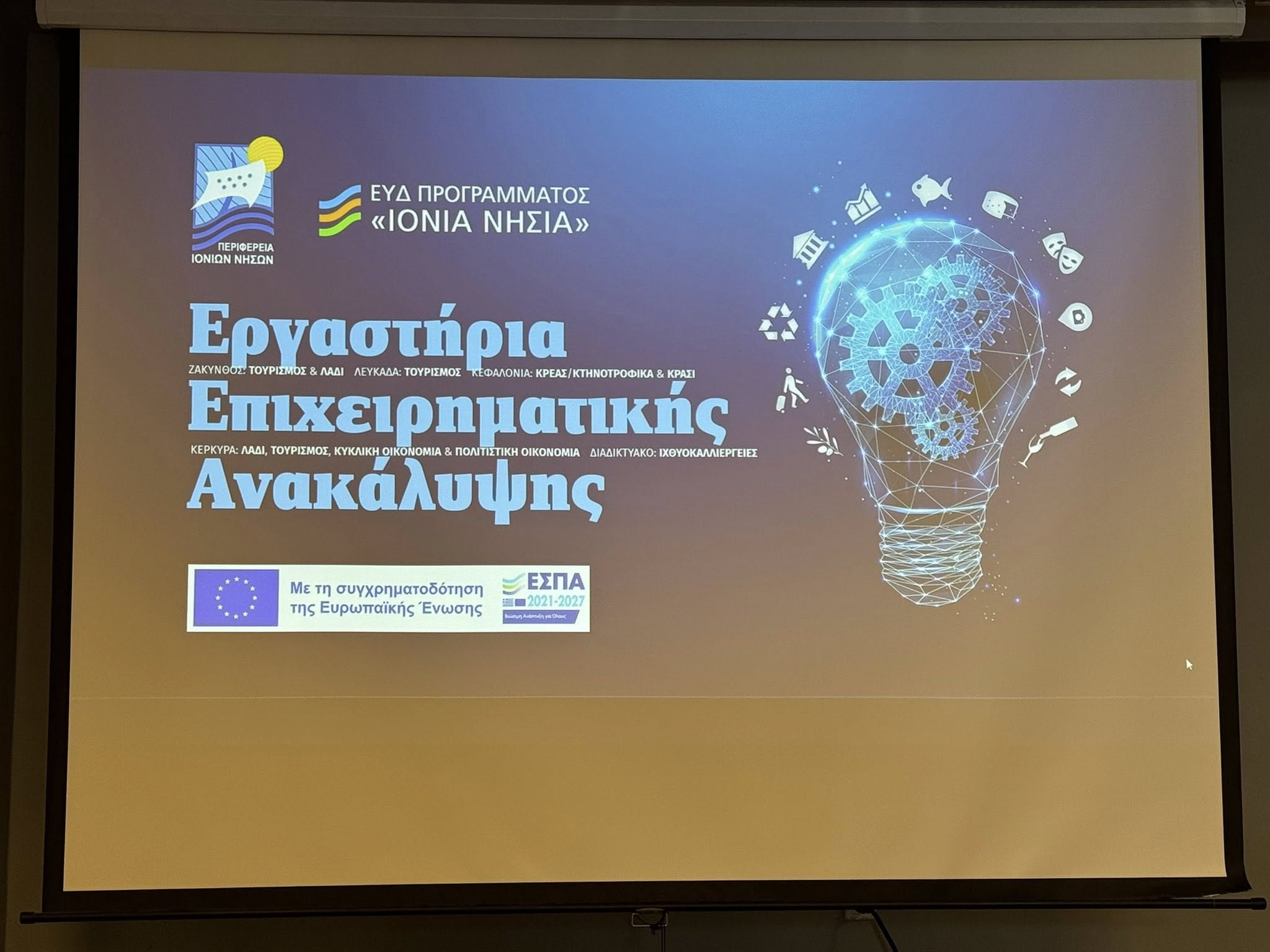 Στην Λευκάδα χθες 16 Μαΐου 2025, παρουσία του Περιφερειάρχη μας κ. Γιάννη Τρεπεκλή, πραγματοποιήθηκαν με επιτυχία οι διενέργειες του Εργαστηρίου Επιχειρηματικής Ανακάλυψης που διοργάνωσε η Περιφέρεια Ιονίων Νήσων και η Ειδική Υπηρεσία Διαχείρισης στο πλαίσιο του Προγράμματος «Ιόνια Νησιά 2021–2027», με επίκεντρο τον κρίσιμο τομέα του Τουρισμού.