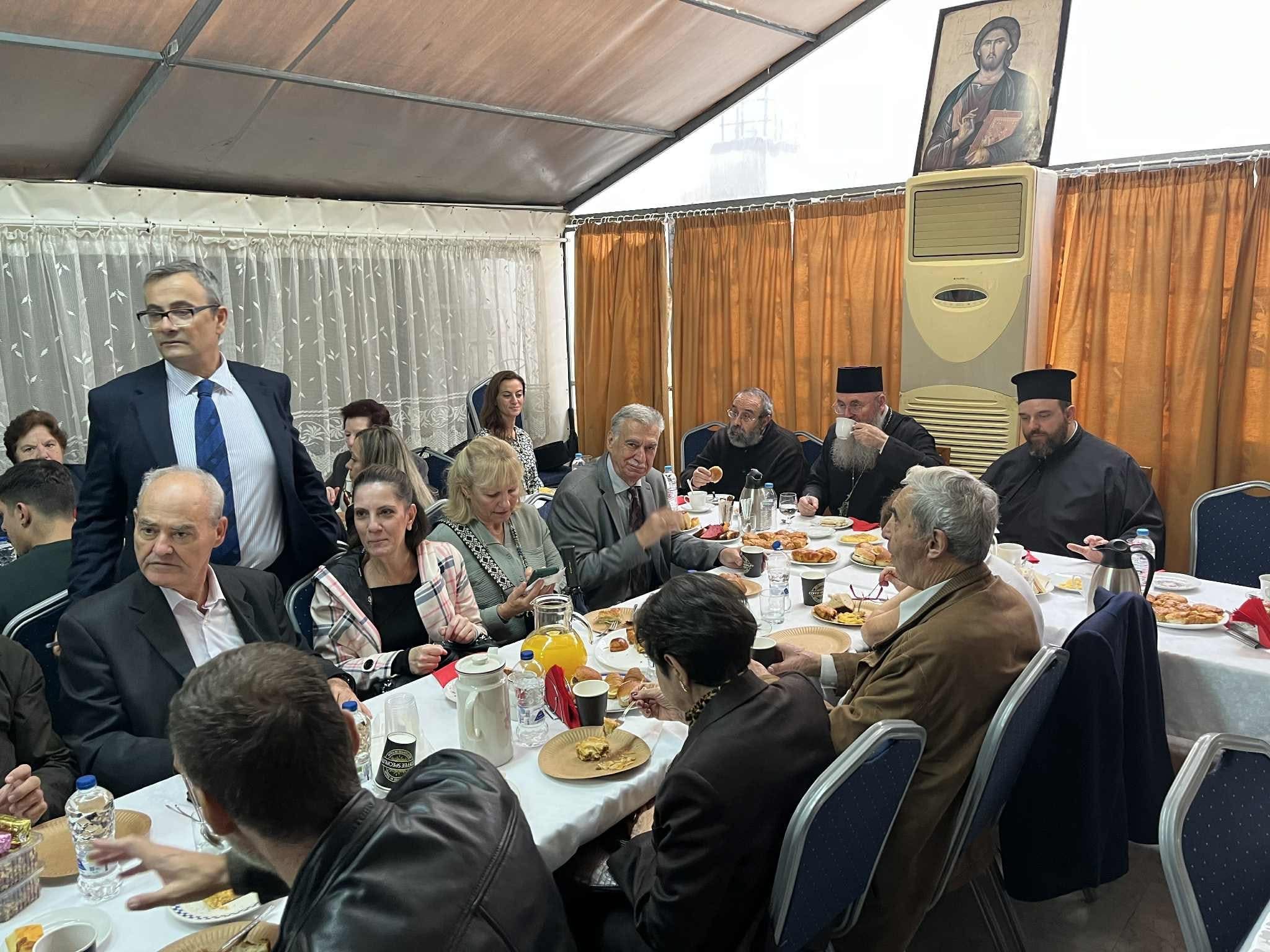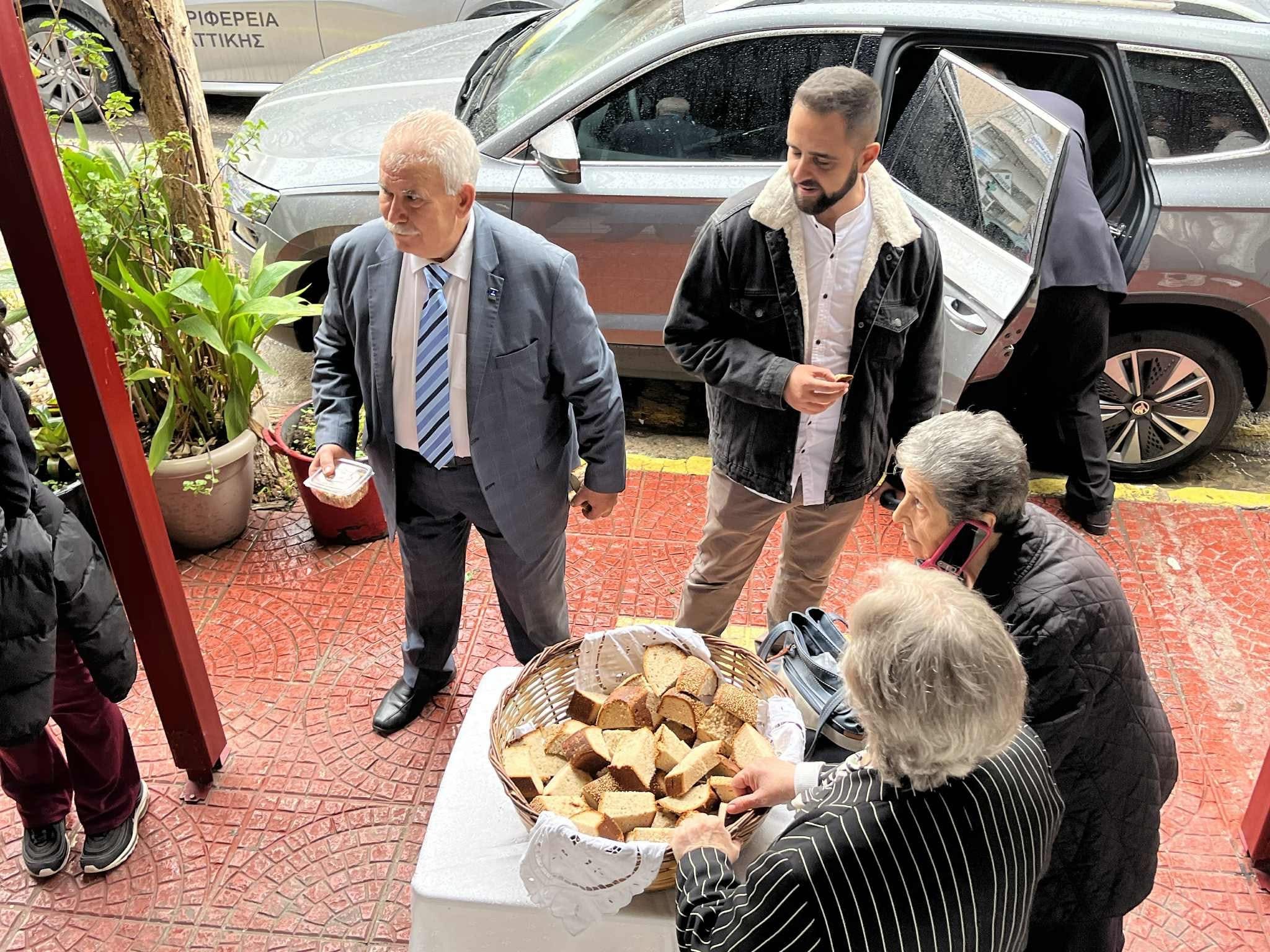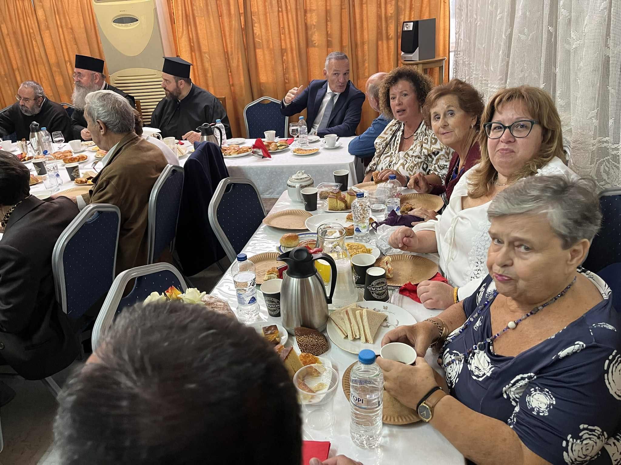 Στο τέλος της Θείας Λειτουργίας ακολούθησε πλούσιο κέρασμα στους πιστούς , από τον εορτάζοντα Αρχιμανδρίτη μας παπά – Γεράσιμο.