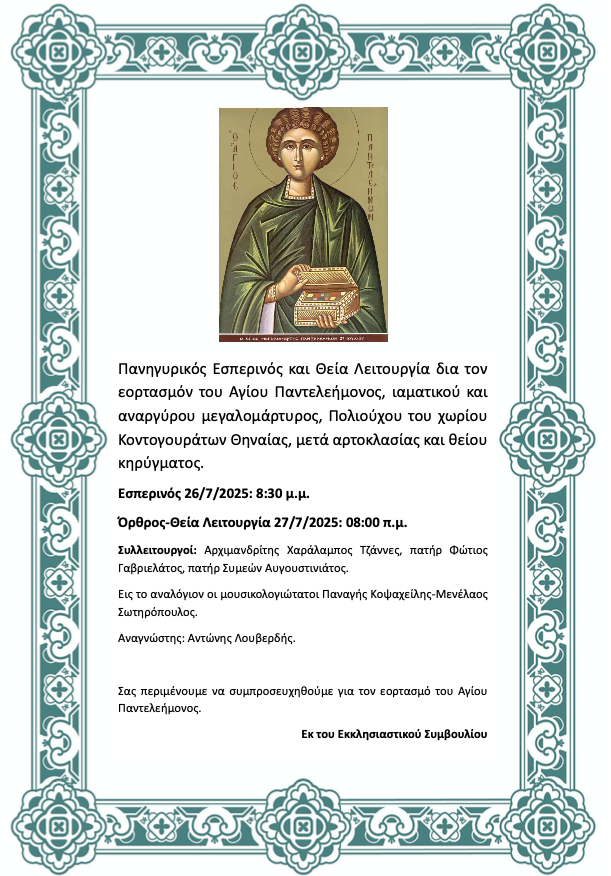 Εορτασμός του Αγίου Παντελεήμονος στα Κοντογουράτα Θηνιάς
