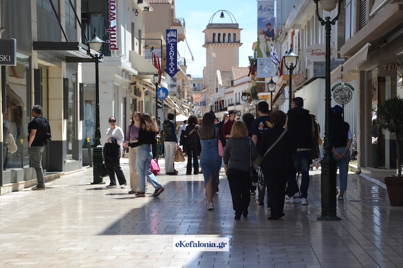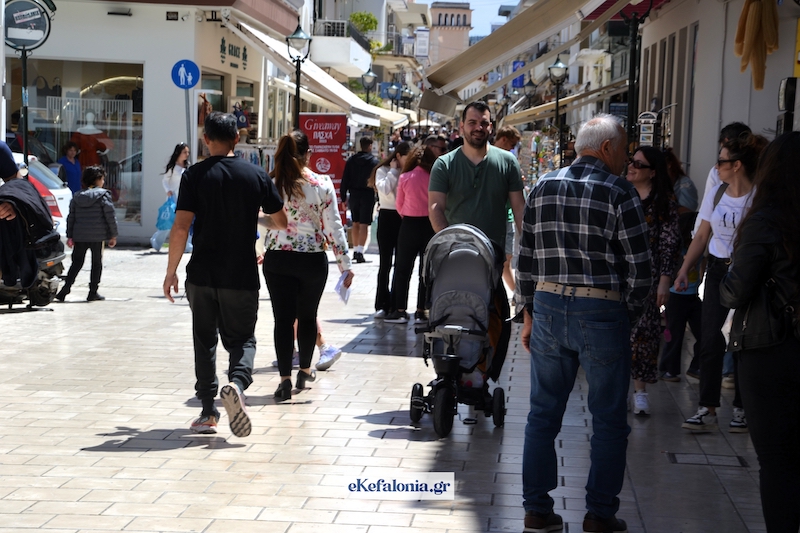 Σε εορταστικούς ρυθμούς κινήθηκε το Αργοστόλι το πρωί του Μεγάλου Σαββάτου, με πλήθος κόσμου κάθε ηλικίας να κατακλύζει το κέντρο της πόλης, επωφελούμενο από τον καλό καιρό για τα πασχαλινά ψώνια της τελευταίας στιγμής.