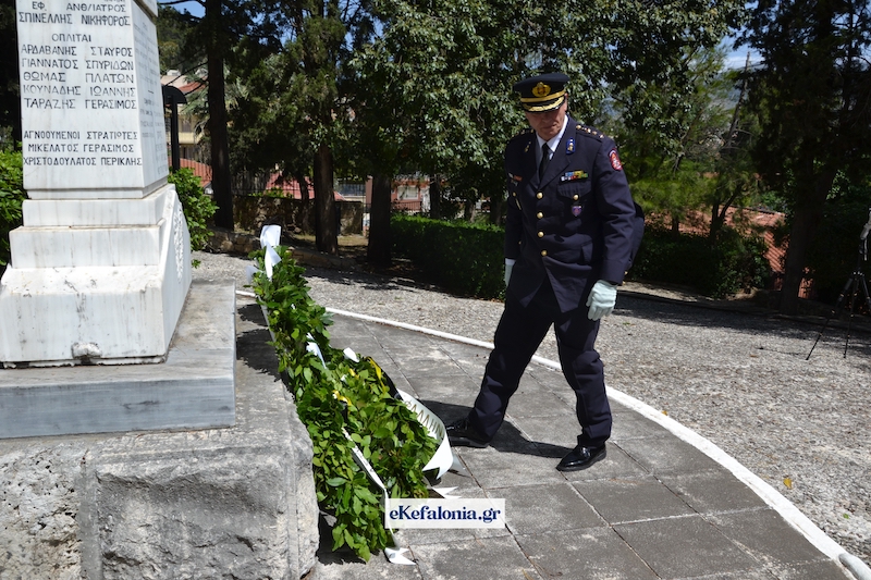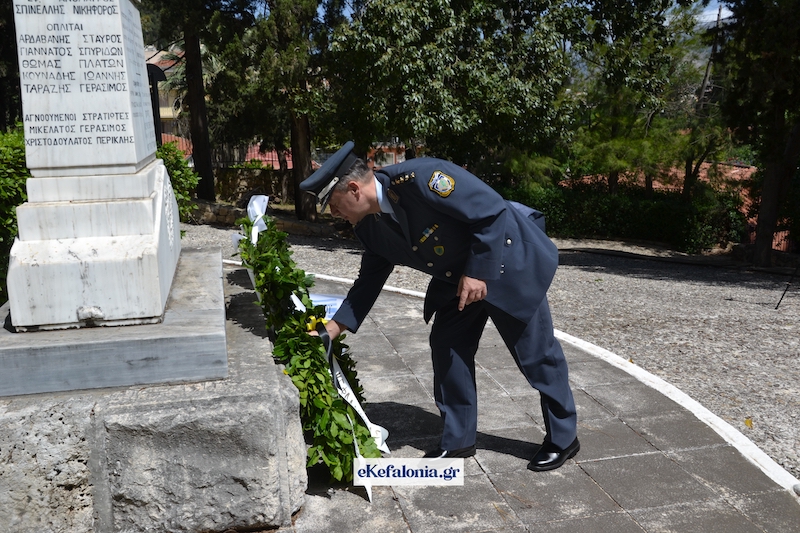 Μετά το μνημόσυνο, πραγματοποιήθηκε τρισάγιο από τον π. Γεώργιο Σταθούλη και ακολούθησε κατάθεση στεφάνων στο Μνημείο Πεσόντων, στον ιστορικό Κήπο του Νάπιερ.