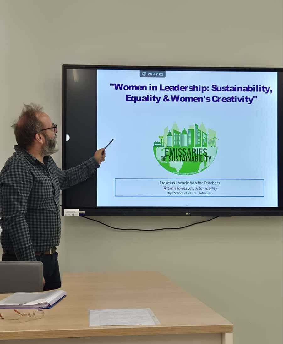 Στις 21 Οκτωβρίου, στον χώρο του Γενικού Λυκείου Πάστρας, έλαβε χώρα η επιμόρφωση των εκπαιδευτικών του σχολείου στο πλαίσιο του έργου «Emissaries for Sustainability» ERASMUS+. Η επιμόρφωση πραγματοποιήθηκε από τον Διευθυντή του ΓΕ.Λ. Πάστρας, κ. Τσιαπλέ Γιώργο, και στο επικεντρό της είχε την Ισότητας των Φύλων και την Βιώσιμη Ανάπτυξη. Υπενθυμίζεται ότι το ΓΕ.Λ. Πάστρας συμμετέχει στο πρόγραμμα κινητικότητας Erasmus+ που υλοποιείται από τη Διεύθυνση Δευτεροβάθμιας Εκπαίδευσης Κεφαλονιάς στην επιδίωξή της να χτίσει γέφυρες γνώσεις και εμπειρίας ανάμεσα στα σχολεία του νησιού και της Ευρώπης. Κατά τη διάρκεια της επιμόρφωσης έγινε αναπαραγωγή των αποτελεσμάτων της πρώτης συνάντησης των εταίρων στην Κεφαλονιά τον Μάιο του 2025. Ιδιαίτερη έμφαση δόθηκε στην ενδυνάμωση των γυναικών σε ηγετικούς ρόλους κάτι που οδηγεί σε πιο συμπεριληπτικές και αποτελεσματικές πολιτικές.