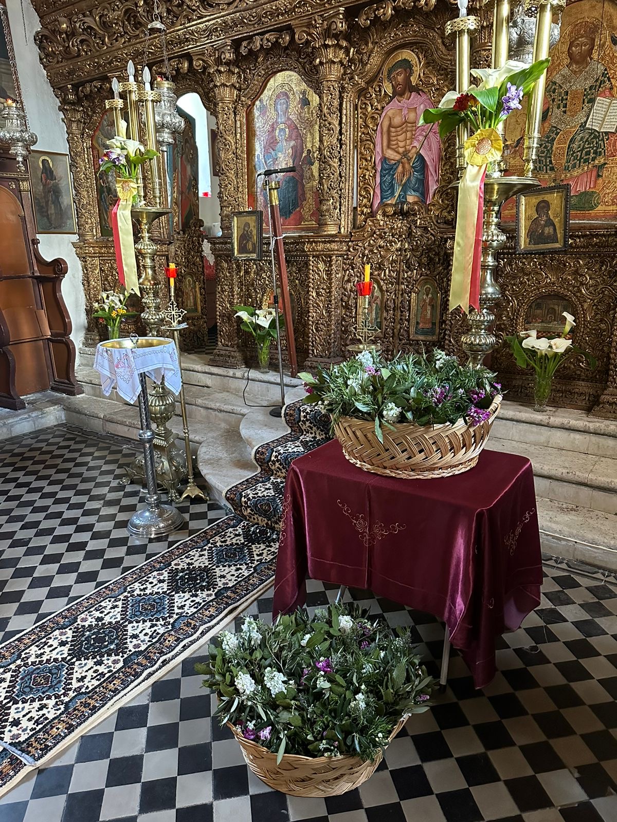 Αφού πλέχτηκαν με φροντίδα, τα Βάγια τοποθετήθηκαν σε μεγάλες κόφες και αύριο, μετά τη Θεία Λειτουργία, θα μοιραστούν στους πιστούς από τον εφημέριο π. Συμεών.