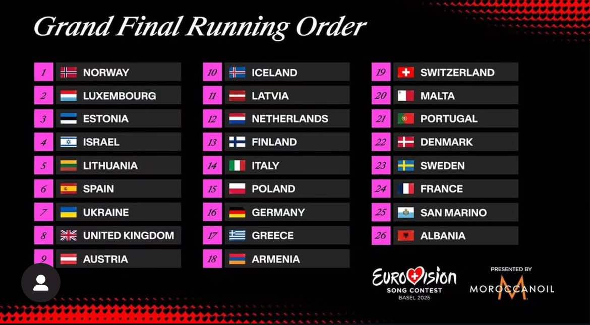 Αναλυτικά η σειρά εμφάνισης των χωρών που θα διαγωνιστούν στον τελικό της Eurovision 2025: