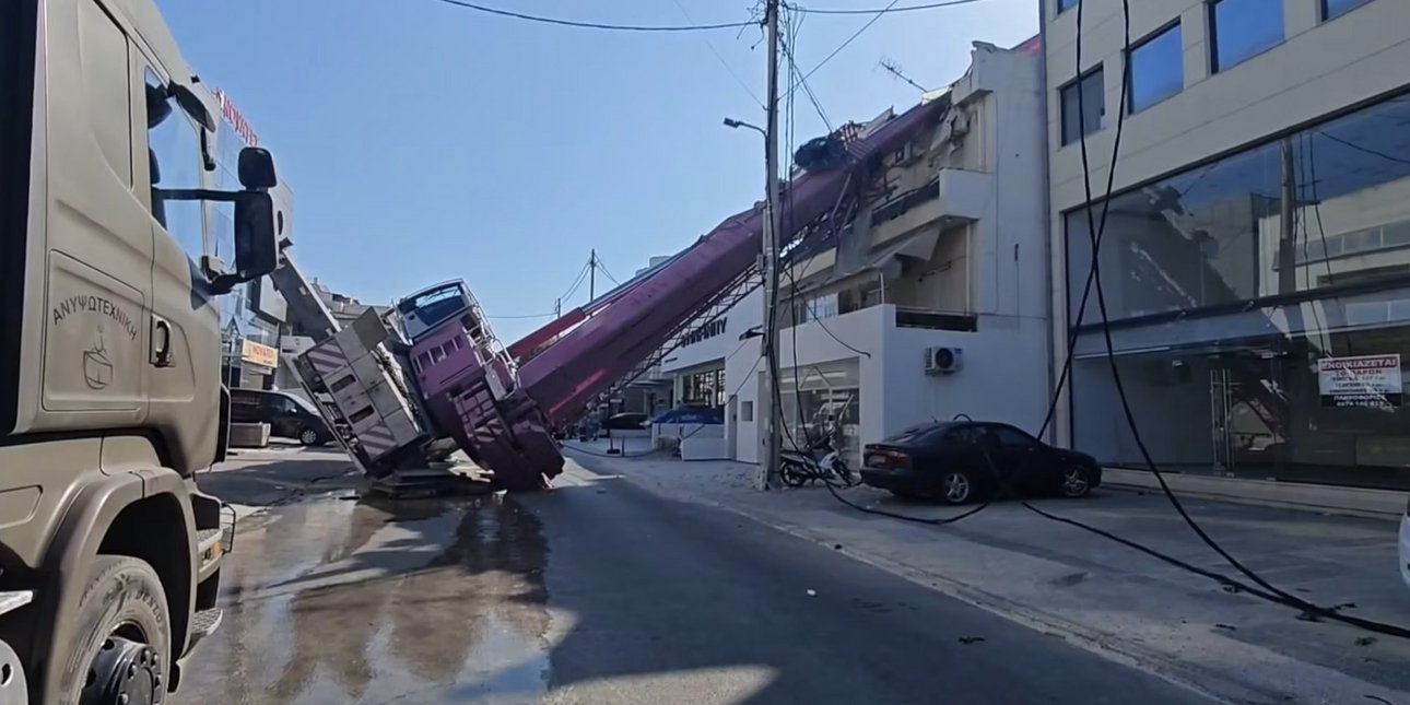 Γερανοφόρο έπεσε σε σπίτι στο Περιστέρι [βίντεο]