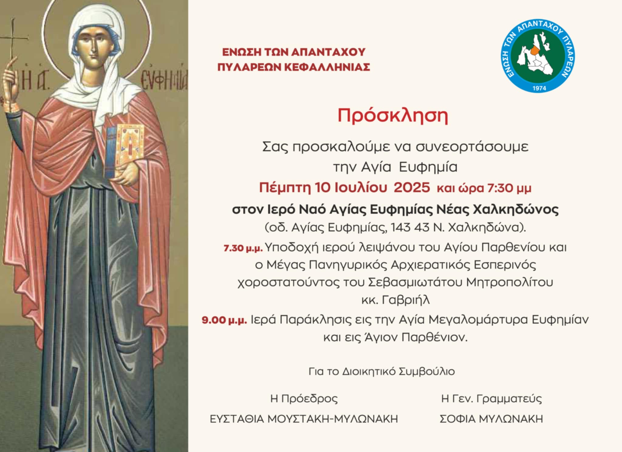 Η Αγία Ευφημία τιμάται στη Νέα Χαλκηδόνα από τους Απανταχού Πυλαρινούς
