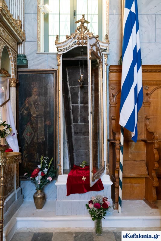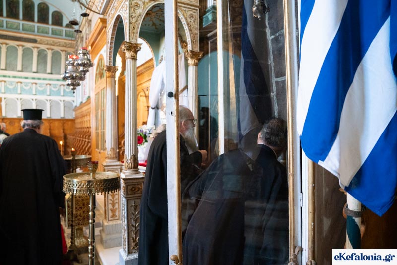 Μετά το πέρας της Θείας Λειτουργίας, πραγματοποιήθηκε επιμνημόσυνη δέηση στη μνήμη του Κεφαλονίτη πλοιάρχου Νικολάου Σκλάβου και των μελών του πληρώματός του, οι οποίοι το 1821 περισυνέλεξαν και διέσωσαν το ιερό σκήνωμα του Πατριάρχη από τον Κεράτιο Κόλπο. Ακολούθησε πνευματική ομιλία της φιλολόγου Αλίκης Γαλιατσάτου, η οποία μίλησε με λεπτομέρειες για τα γεγονότα που εκτυλίχτηκαν την περίοδο 1797 έως και το 1821.