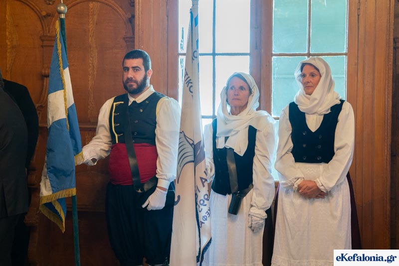 Στη σεμνή τελετή παρέστησαν μεταξύ άλλων ο Δήμαρχος Θεόφιλος Μιχαλάτος, ο Αντιπεριφερειάρχης Κεφαλονιάς Σωτήρης Κουρής, ο Αντιδήμαρχος Πολιτικής Προστασίας Διονύσης Κωνσταντάτος, η Πρόεδρος του Λυκείου Ελληνίδων Κεφαλονιάς Ευρώπη Μοσχονά -Μαραγκάκη κα.