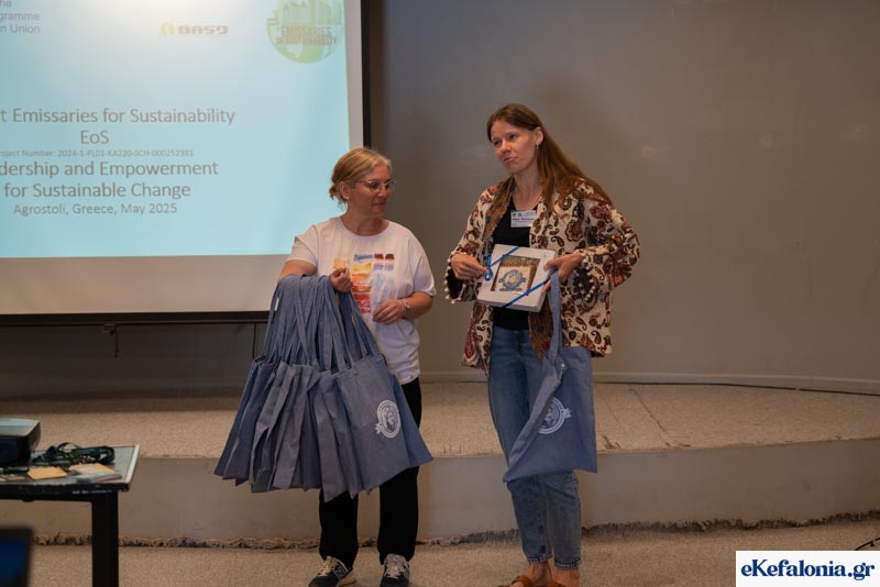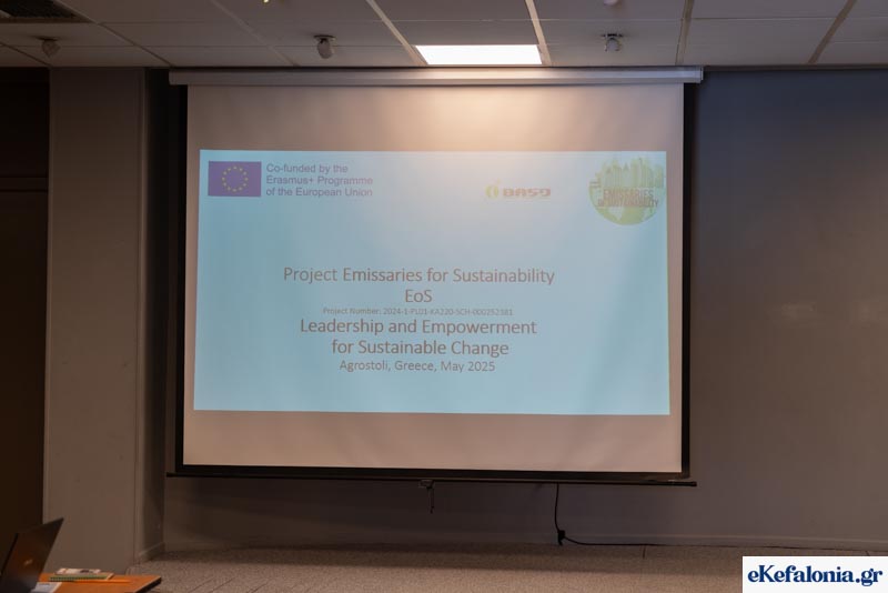 Σε εξέλιξη βρίσκεται, στο ισόγειο του θεάτρου «Κέφαλος» στο Αργοστόλι, επιμορφωτική εκδήλωση των εταίρων του ευρωπαϊκού προγράμματος Erasmus+ με τίτλο “Emissaries of Sustainability”. Η εκδήλωση διοργανώνεται στο πλαίσιο της ενεργής συμμετοχής της Διεύθυνσης Δευτεροβάθμιας Εκπαίδευσης Κεφαλληνίας, η οποία αποτελεί βασικό εταίρο του προγράμματος.