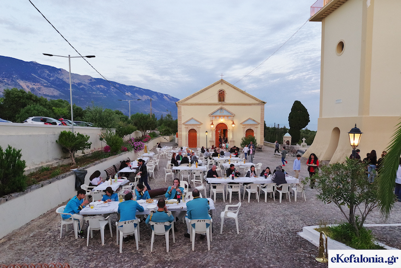 Μετά το πέρας της πομπής, στον προαύλιο χώρο του ναού είχαν στηθεί τραπέζια, όπου οι παριστάμενοι είχαν την ευκαιρία να απολαύσουν τοπικά κεράσματα και αναψυκτικά.
