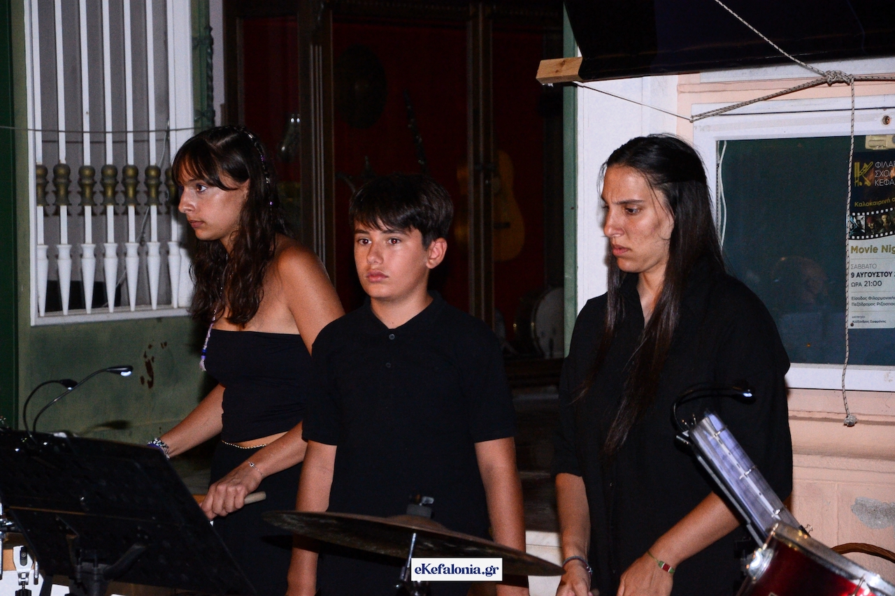 Μια ανεπανάληπτη μουσική βραδιά χάρισε στο Αργοστόλι η Φιλαρμονική Σχολή Κεφαλληνίας, το βράδυ του Σαββάτου 9 Αυγούστου 2025, μεταφέροντας το κοινό στον μαγικό κόσμο της μεγάλης οθόνης. Η εκδήλωση, αφιερωμένη στην κινηματογραφική μουσική, πραγματοποιήθηκε στον προαύλιο χώρο του ιστορικού κτηρίου της Φιλαρμονικής στην Ριζοσπαστών, που κατακλύστηκε από θεατές παρά την αποπνικτική ζέστη.