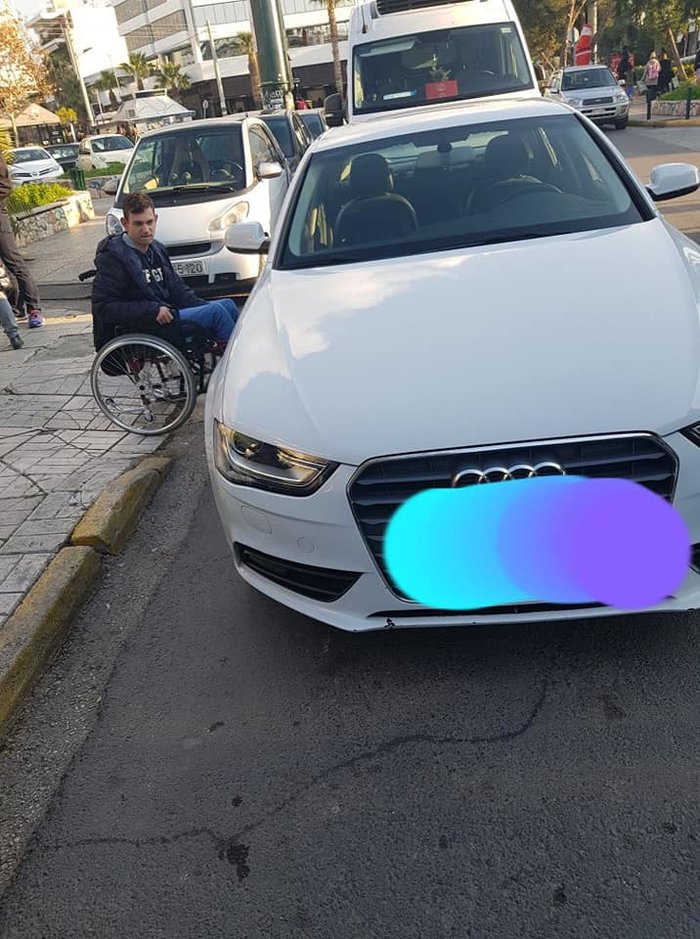 συνεχίζω και της εξηγώ ότι έχω στο αυτοκίνητο άτομο με αναπηρία οπότε πρέπει να φύγει. “Στράβωνει” πολύ και μου λέει “καλά που σε έπιασε ο πόνος” και η πίεση μου πάει στο 200 οπότε της λέω με πολύ ένταση χωρίς να υψώσω φωνή, “σέβομαι τα άσπρα μαλλιά και των δύο σας αλλά η αστυνομία είναι από πίσω και σας δίνω 2 λεπτά για να φύγετε” . Στο μεταξύ ο αστυνομικός, επειδή έχω κλείσει τον δρόμο έξω από το Mark’s & Spencer έρχεται και του εξηγώ. Το ζευγάρι αποχωρεί με συνοπτικές διαδικασίες και ο αστυνομικός κόβει κλήση στο διπλανό από εμένα αυτοκίνητο, επίσης παρκαρισμένο σε θέση ΑμΕΑ και ξεβιδώνει πινακίδες. Εξηγώ στον ανηψιό μου που είναι μικρότερος γιατί έκανα όλο αυτόν τον ντόρο και γιατί είναι λάθος να μην σεβόμαστε την ένδειξη ΑμΕΑ στα πάρκινγκ ή τις διαβάσεις και τις ράμπες.