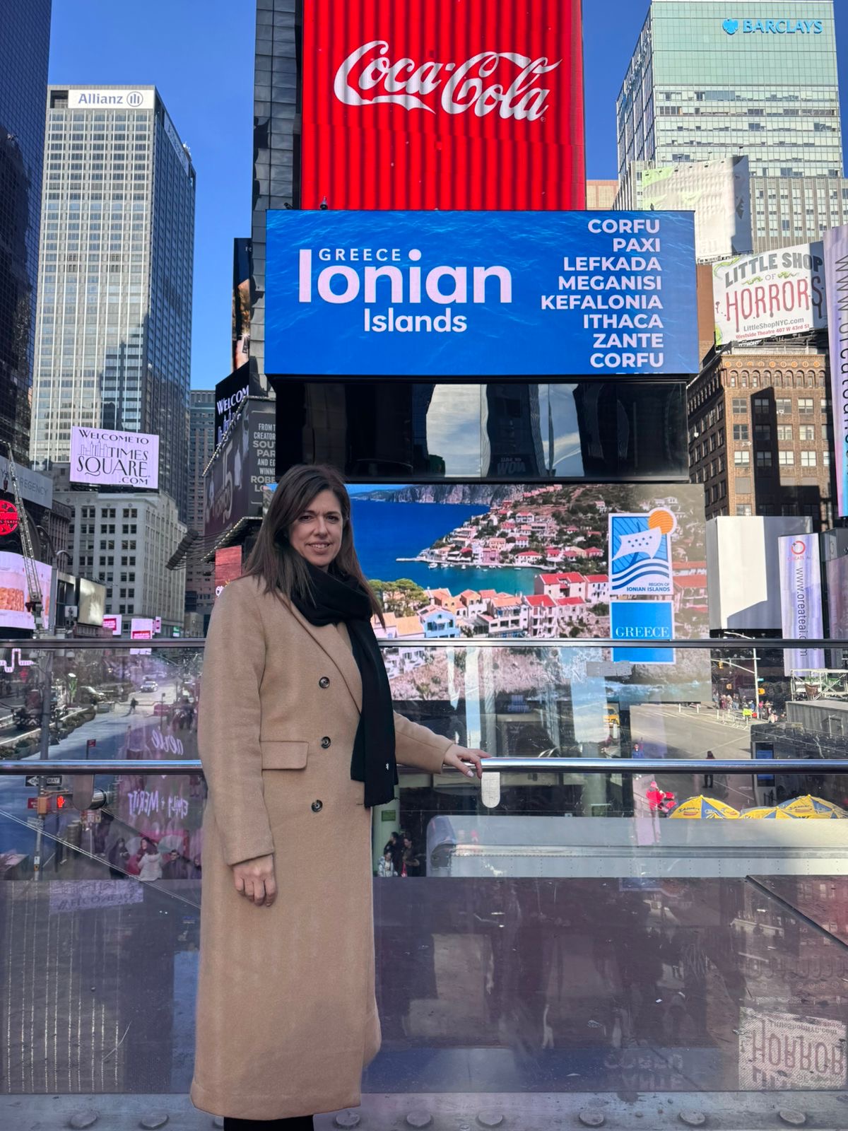 Στην πρόσφατη ανάρτησή της από τη Νέα Υόρκη, η Ελένη Παπαναστασάτου αναφέρεται στην προβολή της καμπάνιας της Περιφέρειας Ιονίων Νήσων στην Times Square, με εικόνες των νησιών μας να εμφανίζονται σε γιγαντοοθόνες, στο πιο προβεβλημένο σημείο της πόλης.