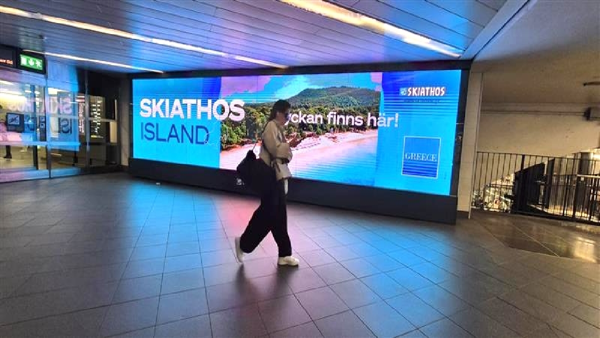 Η φυσική ομορφιά της Σκιάθου προβάλλεται φέτος στη Σουηδία μέσα από μια δυναμική ψηφιακή καμπάνια, η οποία ξεκίνησε στις 2 Ιουνίου και θα διαρκέσει έως τις 15 Ιουνίου 2025. Εικόνες από το νησί των Σποράδων κοσμούν μεγάλες ψηφιακές οθόνες σε τέσσερις σταθμούς του μετρό και έναν κεντρικό δρόμο της Στοκχόλμης, καθώς και σε κεντρικό σημείο του Γκέτεμποργκ.