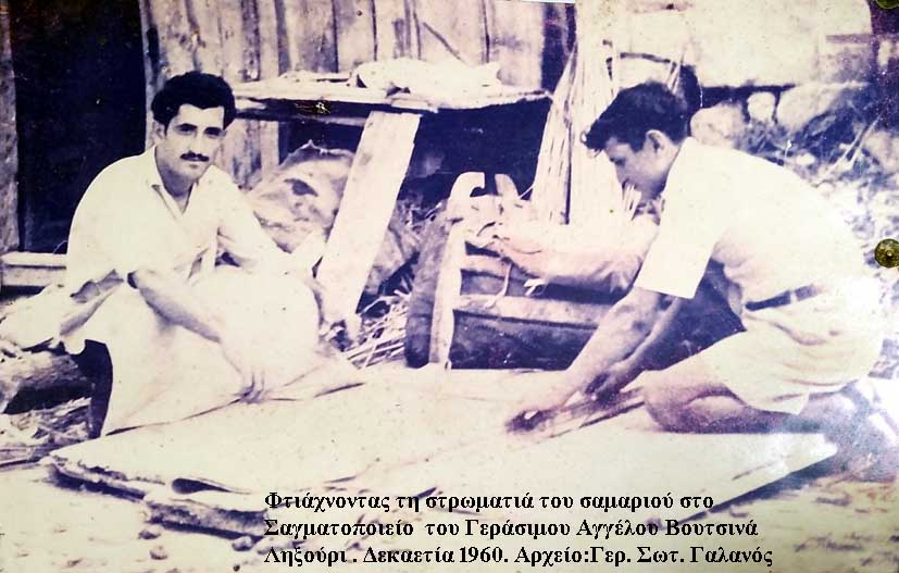 Θυμόταν την κάθε λεπτομέρεια αυτής της βιοποριστικής εργασίας, του σαγματοποιού και μιλούσε με καμάρι γι’ αυτήν. Πληθωρικός όπως ήταν μου εξιστόρησε το 2001 το κάθε βήμα της κατασκευής του σαμαριού.