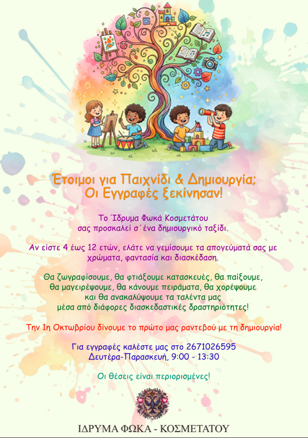 Ίδρυμα Φωκά-Κοσμετάτου: Έναρξη λειτουργίας Εργαστηρίου δημιουργικής απασχόλησης