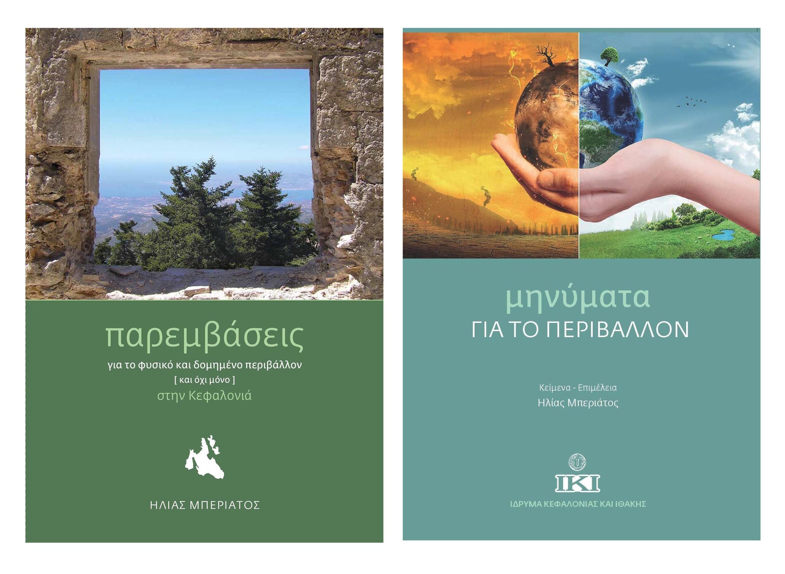 Το βιβλίο ‘Μηνύματα για το περιβάλλον’, εκδόθηκε εφέτος από το Ίδρυμα Κεφαλονιάς και Ιθάκης (ΙΚΙ) με κείμενα Ηλία Μπεριάτου. Το βιβλίο περιλαμβάνει μηνύματα και διακηρύξεις που γράφτηκαν και δημοσιοποιήθηκαν τον 21ο αιώνα, για τα κρίσιμα θέματα του περιβάλλοντος. Όπως αναφέρεται στον εισαγωγικό σημείωμα του συγγραφέα, βασικός στόχος της έκδοσης είναι η ενημέρωση και ευαισθητοποίηση των πολιτών και φορέων των νησιών μας ώστε να συμμετέχουν ενεργά στη διαδικασία της προστασίας του ανθρωπογενούς και φυσικού περιβάλλοντος.