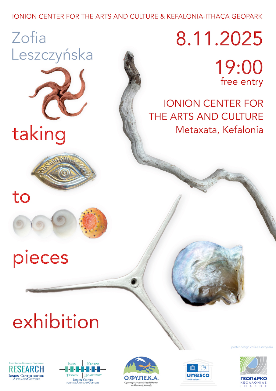 Το Ιόνιο Κέντρο, σε συνεργασία με το Γεωπάρκο Κεφαλονιάς–Ιθάκης, παρουσιάζει την εικαστική έκθεση της Zofia Leszczyńska με τίτλο “Taking to Pieces”.