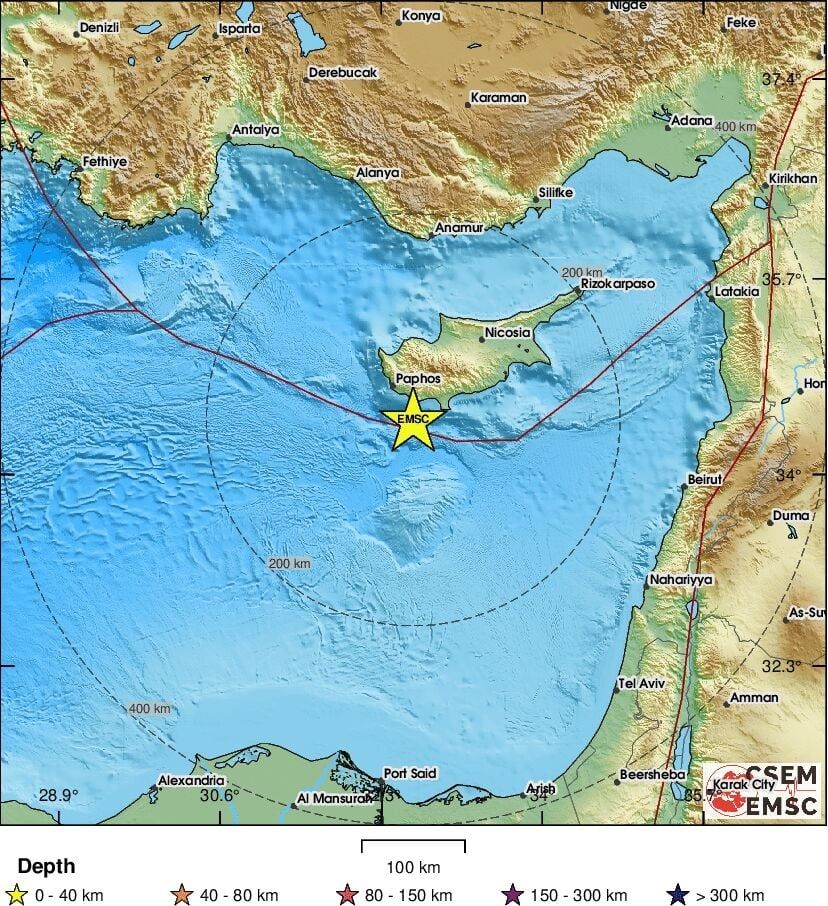 Επίκεντρο του σεισμού, όπως σημειώνεται σε ανάρτηση του Ευρωπαϊκού Μεσογειακού Σεισμολογικού Κέντρου, είναι η Πάφος και η Λεμεσός, ωστόσο ο σεισμός έγινε αισθητός σε ολόκληρη την Κύπρο.