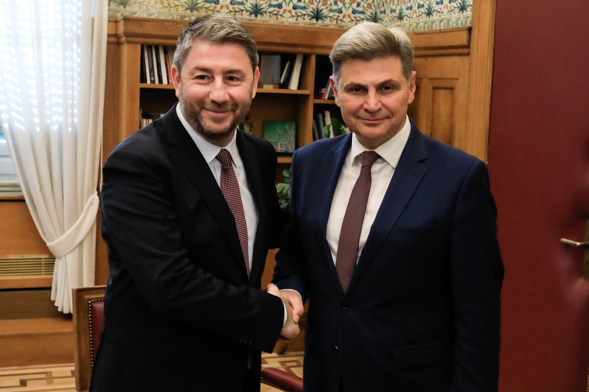 Ο Nικόλας Φαραντούρης επισημοποίησε την ένταξή του στο ΠΑΣΟΚ – ΚΙΝΑΛ κατά τη συνάντησή του με τον Νίκο Ανδρουλάκη στα γραφεία του προέδρου του κόμματος στη Βουλή.