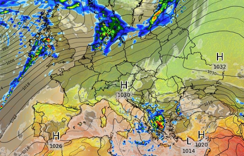 Σύμφωνα με τα τελευταία δεδομένα του ECMWF, ένα βαρομετρικό χαμηλό υψηλής έντασης αναμένεται να στροβιλίζεται πάνω από την Ελλάδα, δημιουργώντας τις κατάλληλες συνθήκες για εκδήλωση ισχυρών βροχοπτώσεων και καταιγίδων.