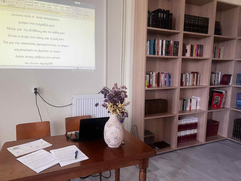 Η κα Αλεξάνδρου πραγματοποίησε ένα εξαιρετικά ενδιαφέρον και συγκινητικό βιωματικό ποιητικό εργαστήρι «Μια χαραμάδα στο κλειστό παράθυρο να γίνει δύναμη ζωής» με τίτλο «Κάθε πρωί μετρώ τον ουρανό και βρίσκω απαντήσεις». Οι μαθητές/τριες μας, καθοδηγούμενοι από την εμπειρία και την ευαισθησία της, είχαν την ευκαιρία να έρθουν σε επαφή με τη δύναμη της ποίησης ως μέσο έκφρασης, ψυχικής εκτόνωσης και ενδυνάμωσης.