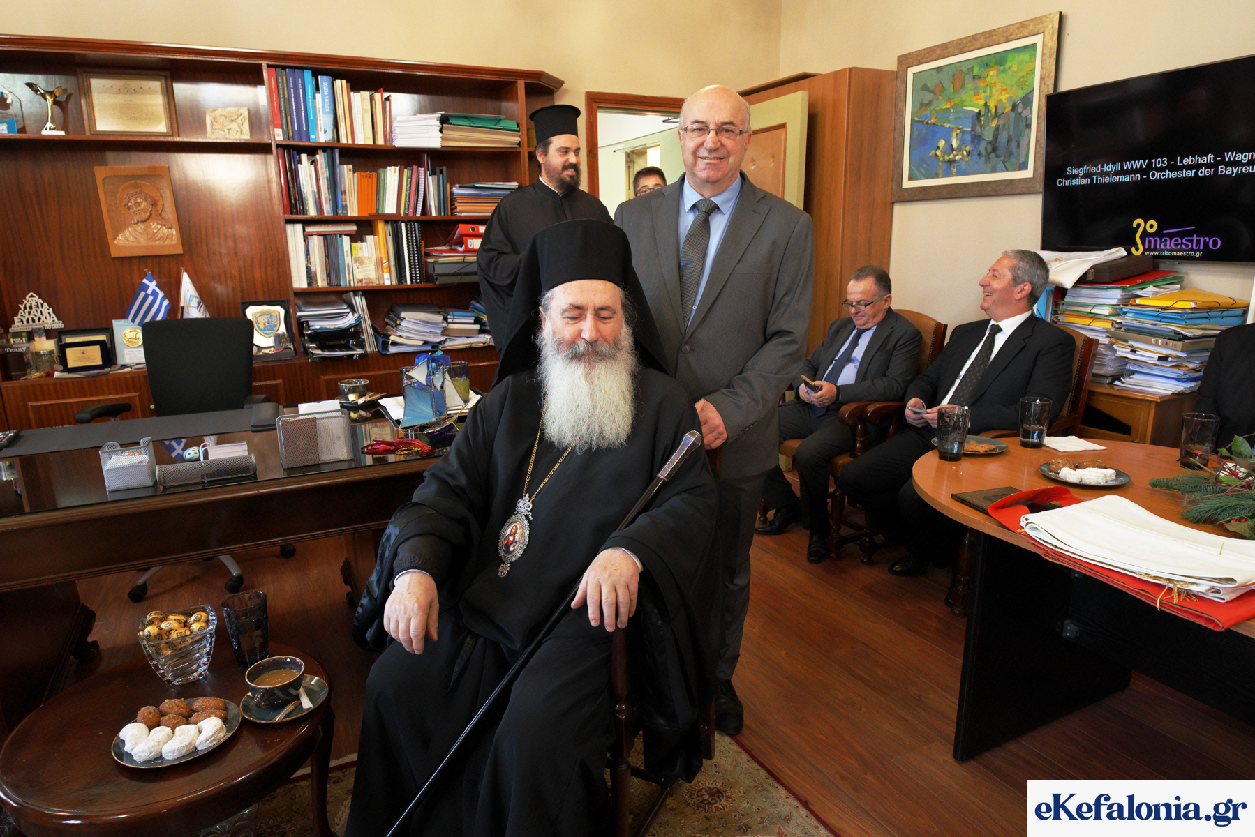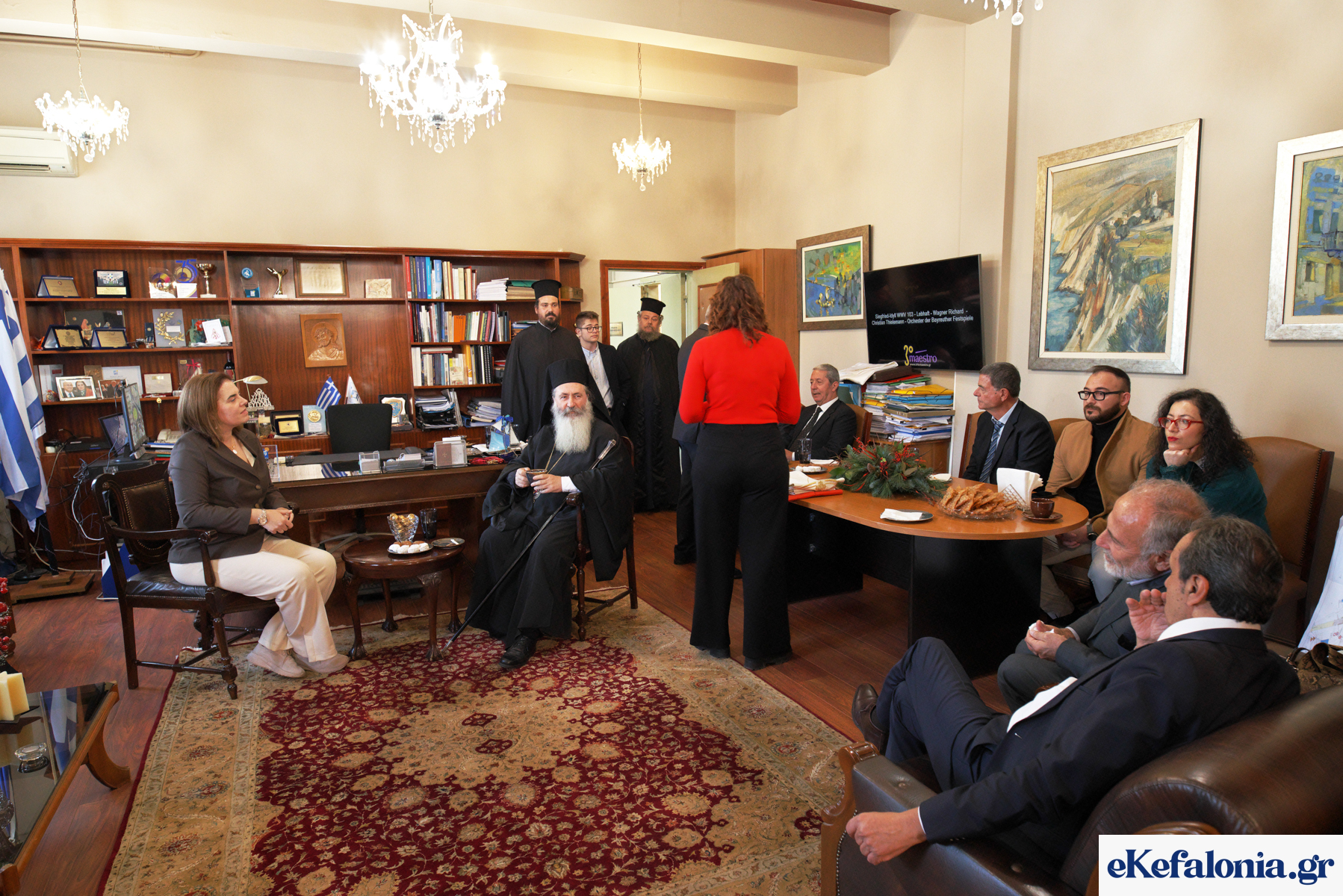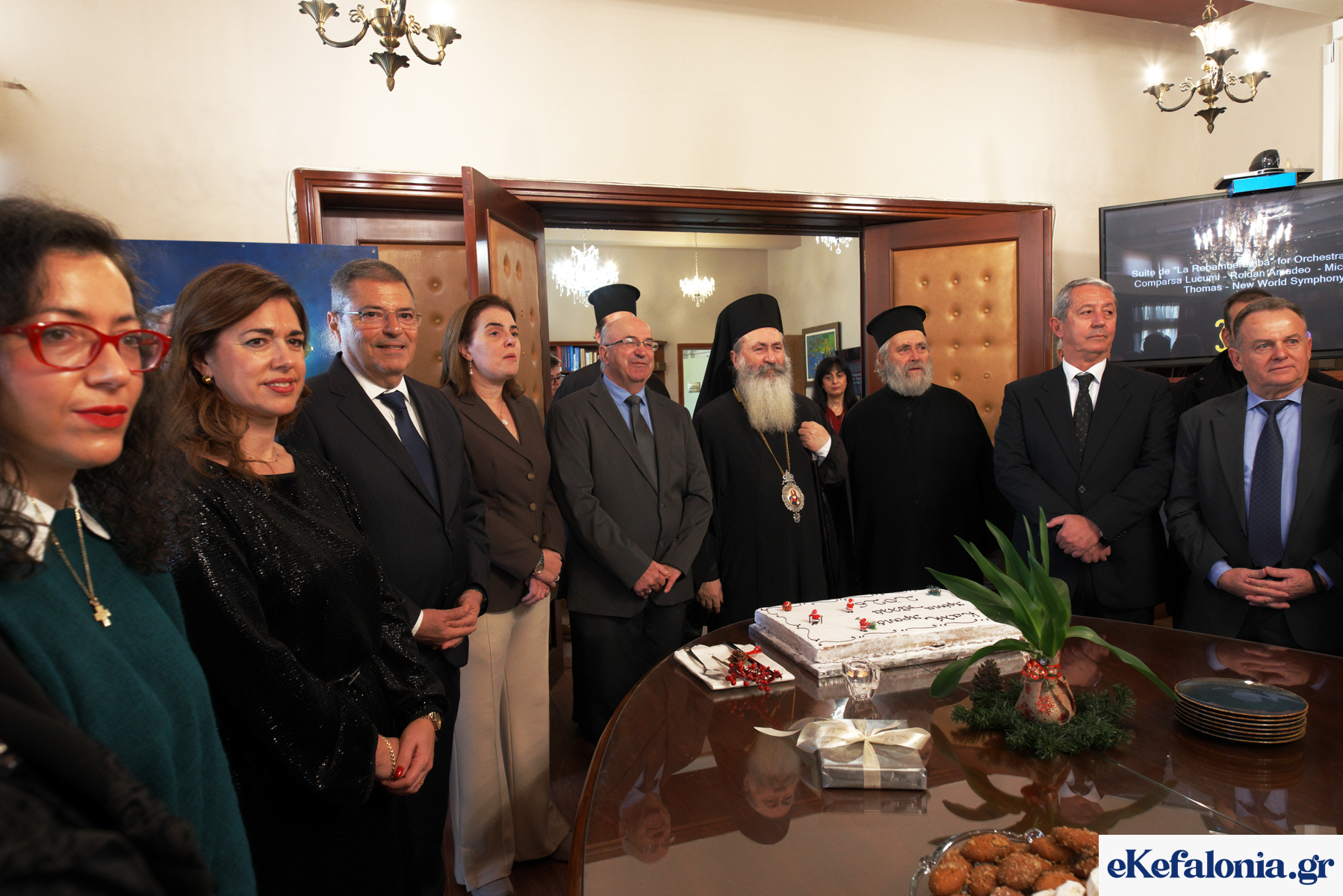 Μετά το πέρας της λειτουργίας, ακολούθησε δεξίωση στο Διοικητήριο της Αντιπεριφέρειας Κεφαλονιάς και Ιθάκης. Στο πλαίσιο της δεξίωσης, ο Σεβασμιώτατος Μητροπολίτης ευλόγησε τη βασιλόπιτα και απηύθυνε εγκάρδιες ευχές για μια καλή και δημιουργική χρονιά.