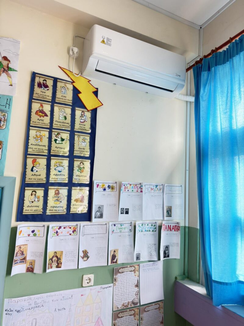 Αξίζει να σημειωθεί ότι οι γονείς διέθεσαν τον πολύτιμο χρόνο τους αποδεικνύοντας έμπρακτα την αξία της ανιδιοτελούς συλλογικής προσπάθειας. Η τοποθέτηση έξι κλιματιστικών στο σχολείο μας αποτελεί έργο των κάτωθι ιδιωτών επαγγελματιών / γονέων μαθητών -τριών του σχολείου μας, τους οποίους ευχαριστούμε ονομαστικά: Γαλιατσάτος Παναγής, Κορσάνος Γεράσιμος, Μπαλτσαβιάς Διαμαντής, Στελλάτος Σωτήριος , Altin Bitri – “Martin’’ με το κατάστημα Δ. Μπαλτσαβιά να δωρίζει τα αναγκαία υλικά για την τοποθέτηση. Επιπλέον, ενδυνάμωσαν την οργάνωση του εξοπλισμού μας με τη δωρεά γαλβανιζέ ραφιών.
