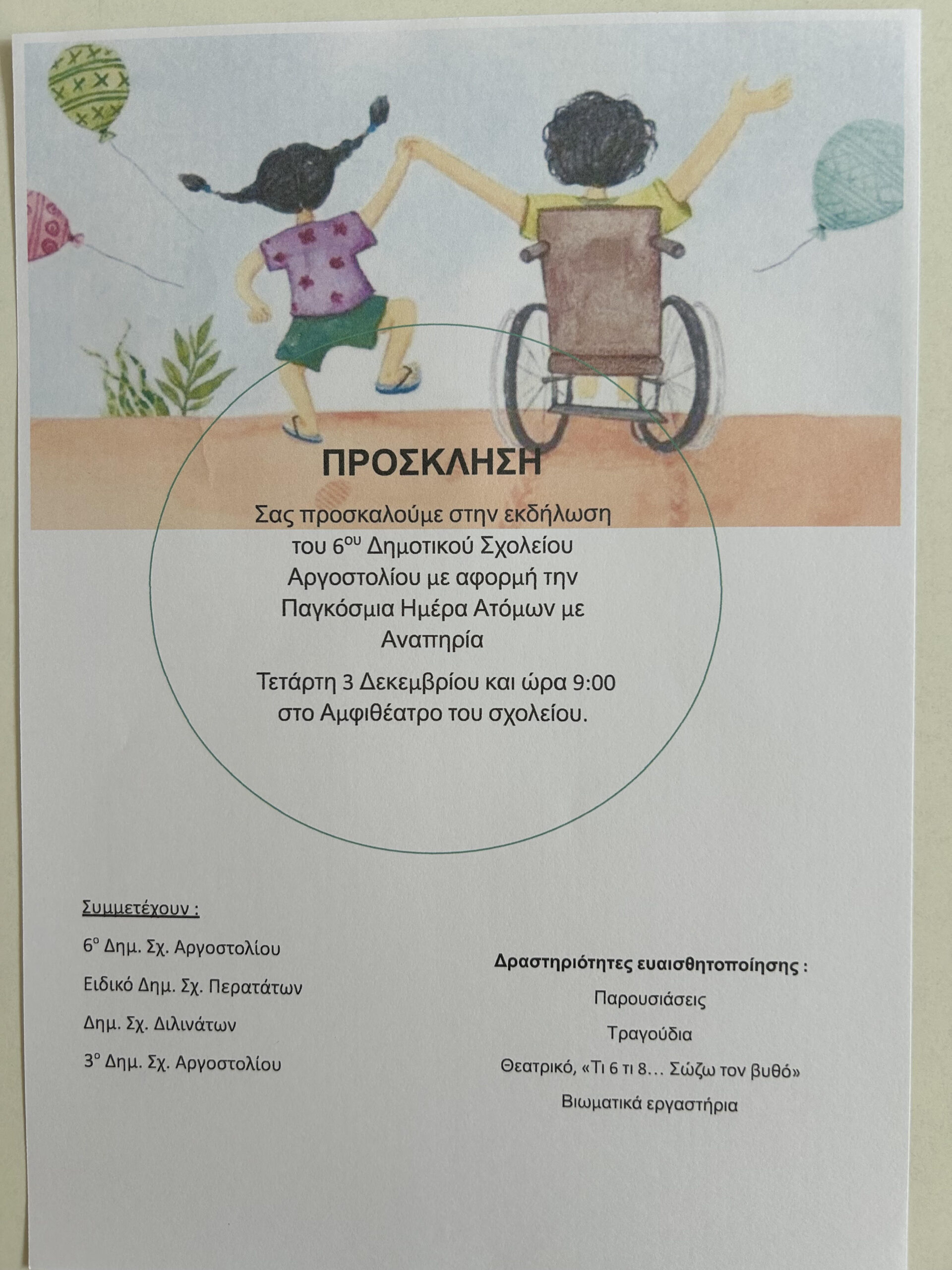 Κεφαλονιά: Το 6ο Δημοτικό Αργοστολίου τιμά την Παγκόσμια Ημέρα Ατόμων με Αναπηρία