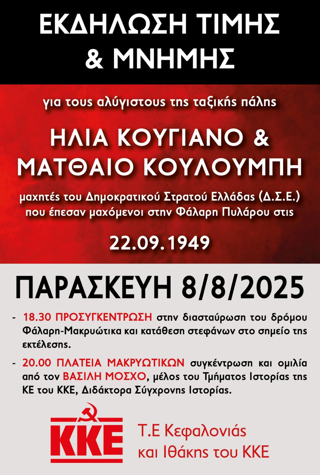 ΚΚΕ Κεφαλονιάς: Ηλίας Κουγιανός & Ματθαίος Κουλουμπής -76 Χρόνια από την εκτέλεση