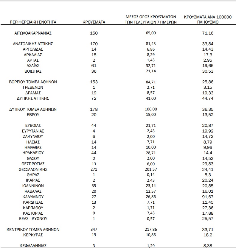 στην Αττική τα κρούσματα κατανέμονται ως εξής: