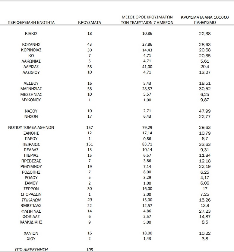 58 καταγράφηκαν στη Λάρισα, ενώ 61 είναι από την Αχαΐα.