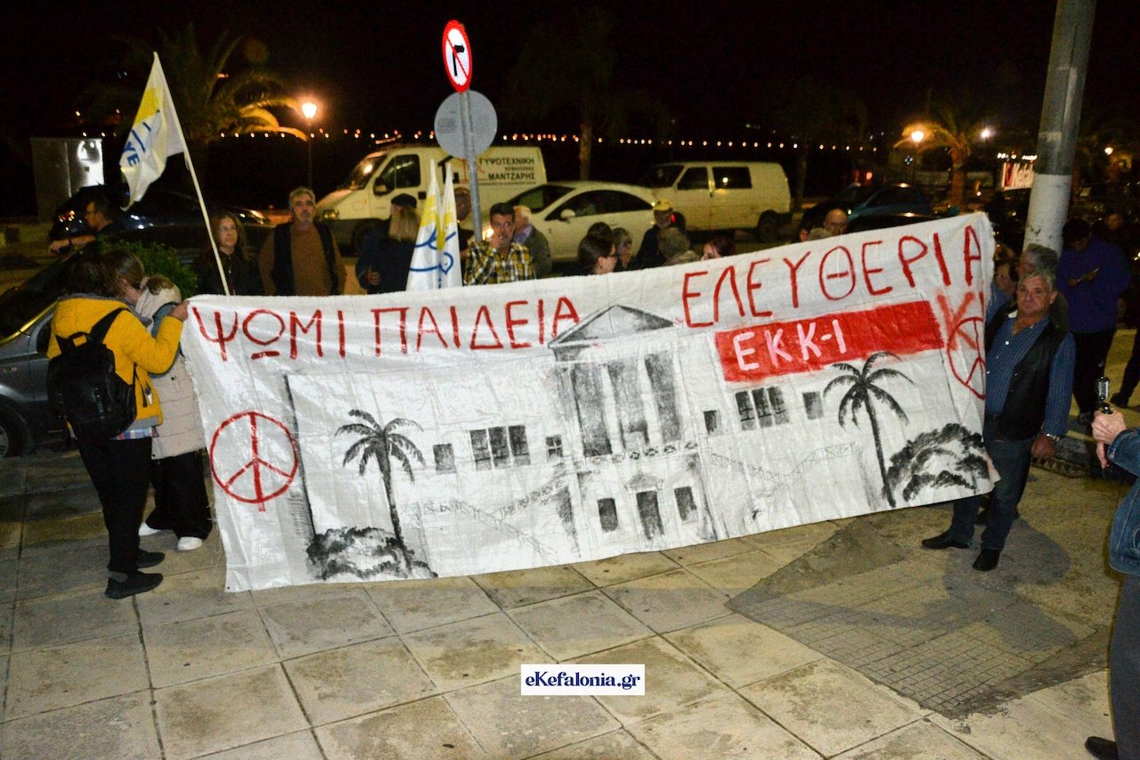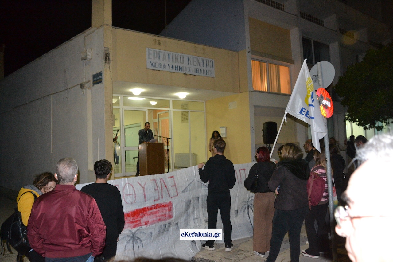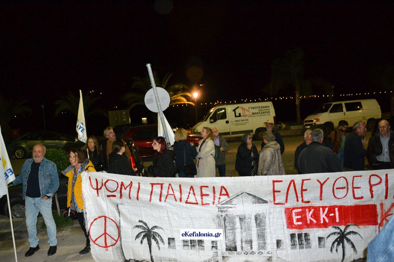 Ακολούθησε πορεία στους δρόμους του Αργοστολίου με τους συμμετέχοντες να φωνάζουν συνθήματα κρατώντας πανό και σημαίες του ΚΚΕ και της Παλαιστίνης.