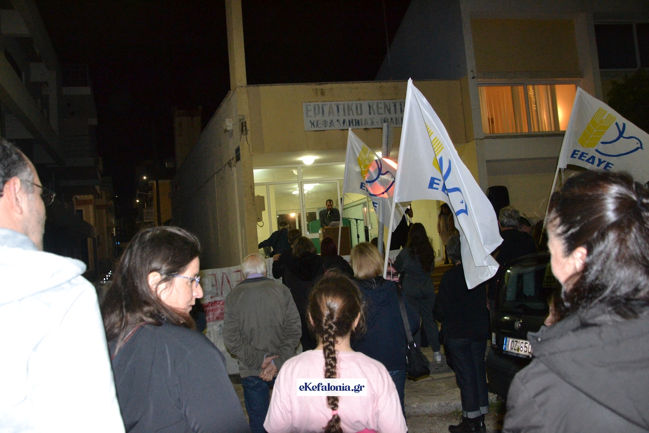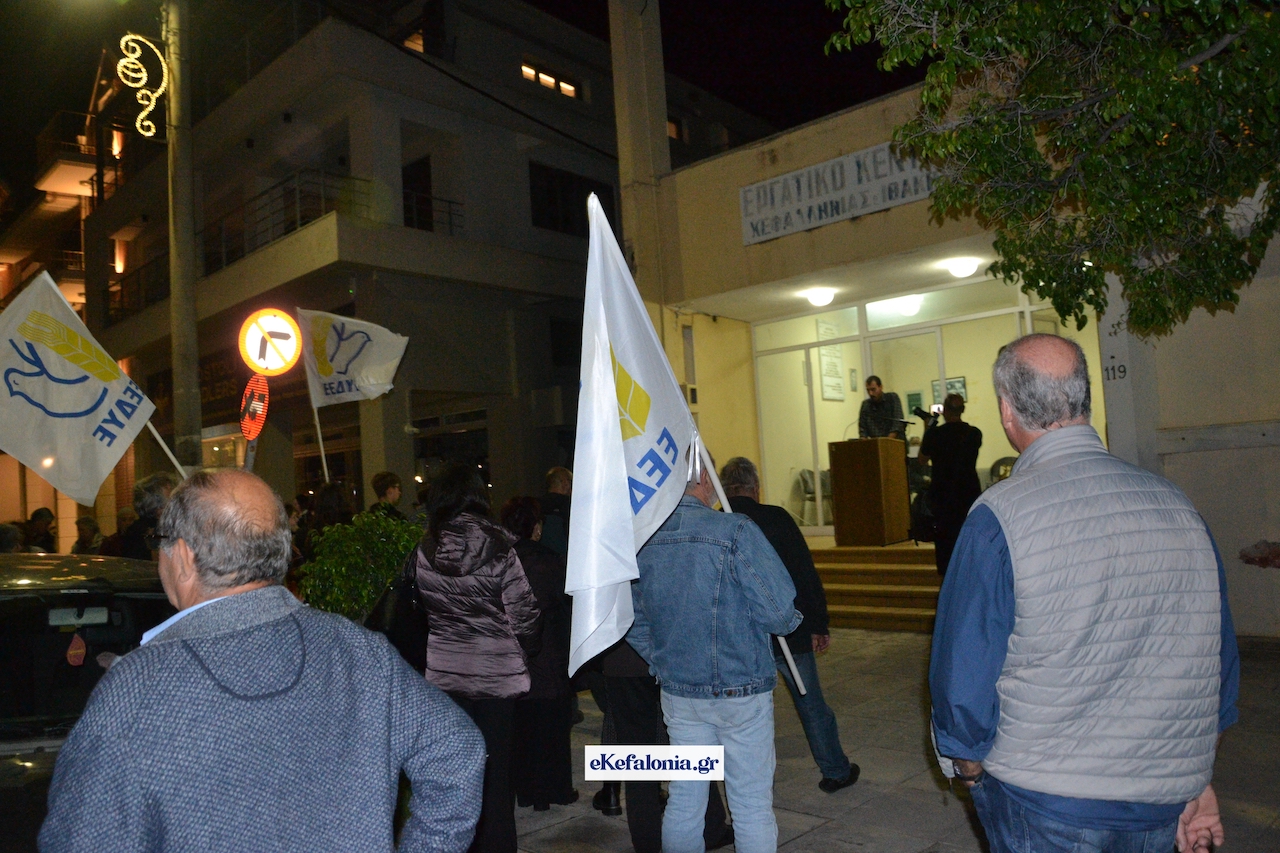 Η προσυγκέντρωση πραγματοποιήθηκε το απόγευμα της Δευτέρας 17 Νοεμβρίου, έξω από τα γραφεία του Εργατικού Κέντρου επί της παραλιακής οδού του Αργοστολίου.