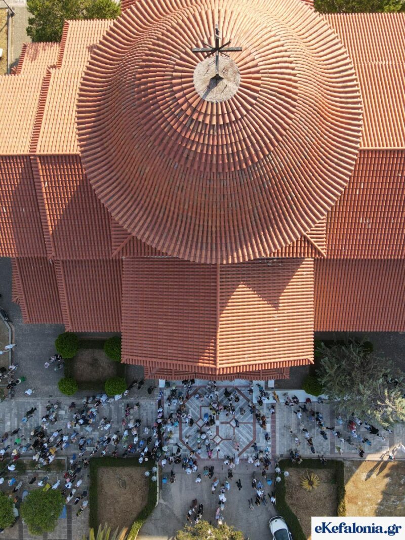 Για πρώτη φορά φέτος το ekefalonia.gr “σήκωσε” drone για να καλύψει τη μεταφορά του Ιερού Σκηνώματος στη μεγάλη εκκλησία και ουσιαστικά την έναρξη των διήμερων εορταστικών εκδηλώσεων.